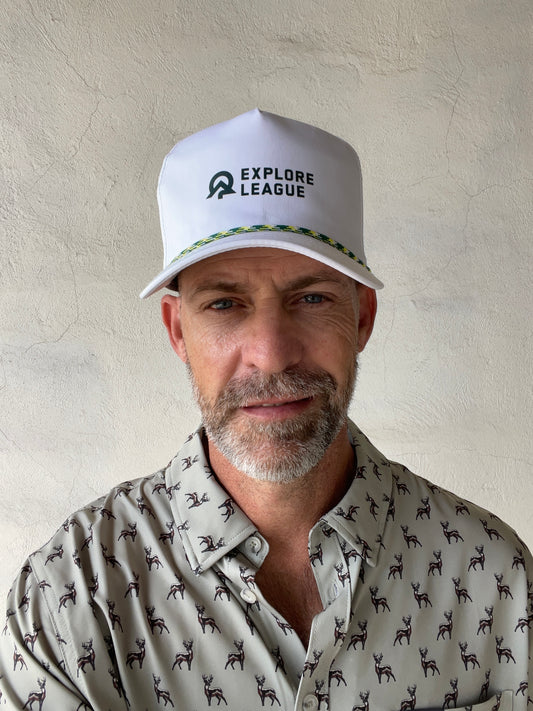 Explore League | White Cap | Red Symbol Front, Red Name Side