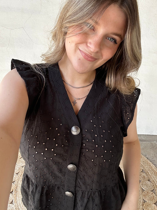Western Nights Eyelet Top | Black