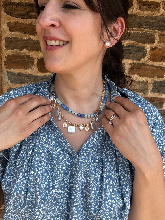 Dainty Floral Short Sleeve Top | Light Denim