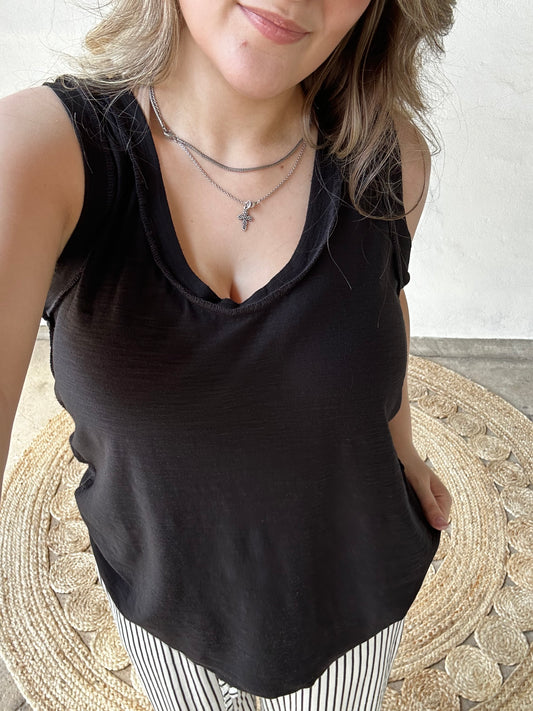 Raw Edge Slub Tank | Black