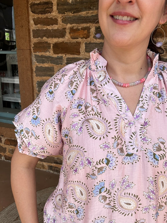 Paisley Floral Short Sleeve Top | Pink + Multi