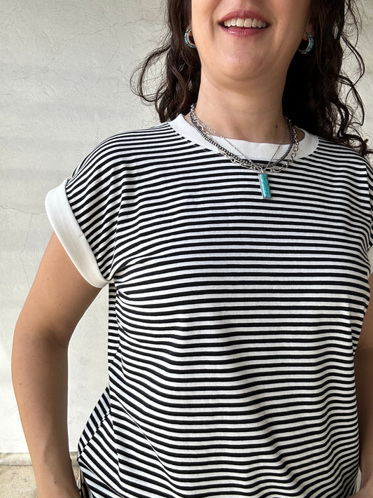 Stripe Tee w/ Contrast Trim | Black + White
