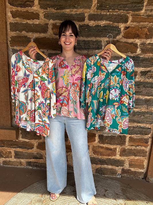 Paisley Perfection 3/4 Sleeve Top | Emerald Mix