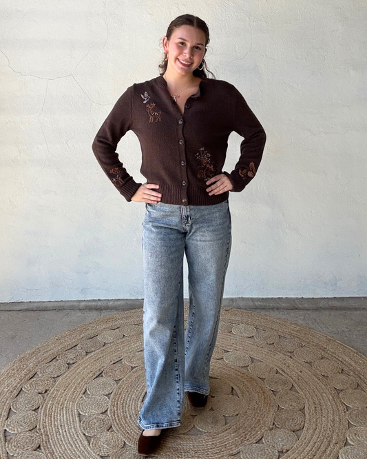 Charlie Solid V-Neck Drop Shoulder Sweater | Dark Mocha