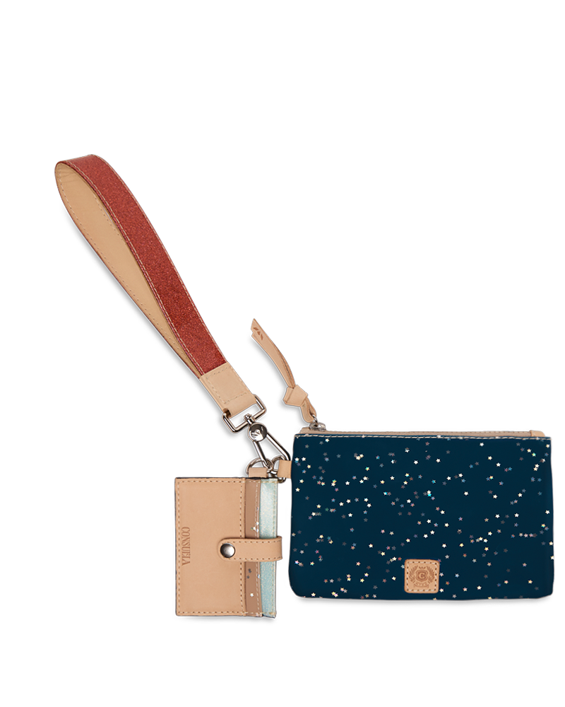 The Consuela Combi is your playful companion for keeping keys, cards, and essentials all in one spot—or easily split up. With its wristlet design, it fits snugly around your wrist while offering a pocket pouch and secure card slot wallet to keep your small stuff safe and handy wherever you go.