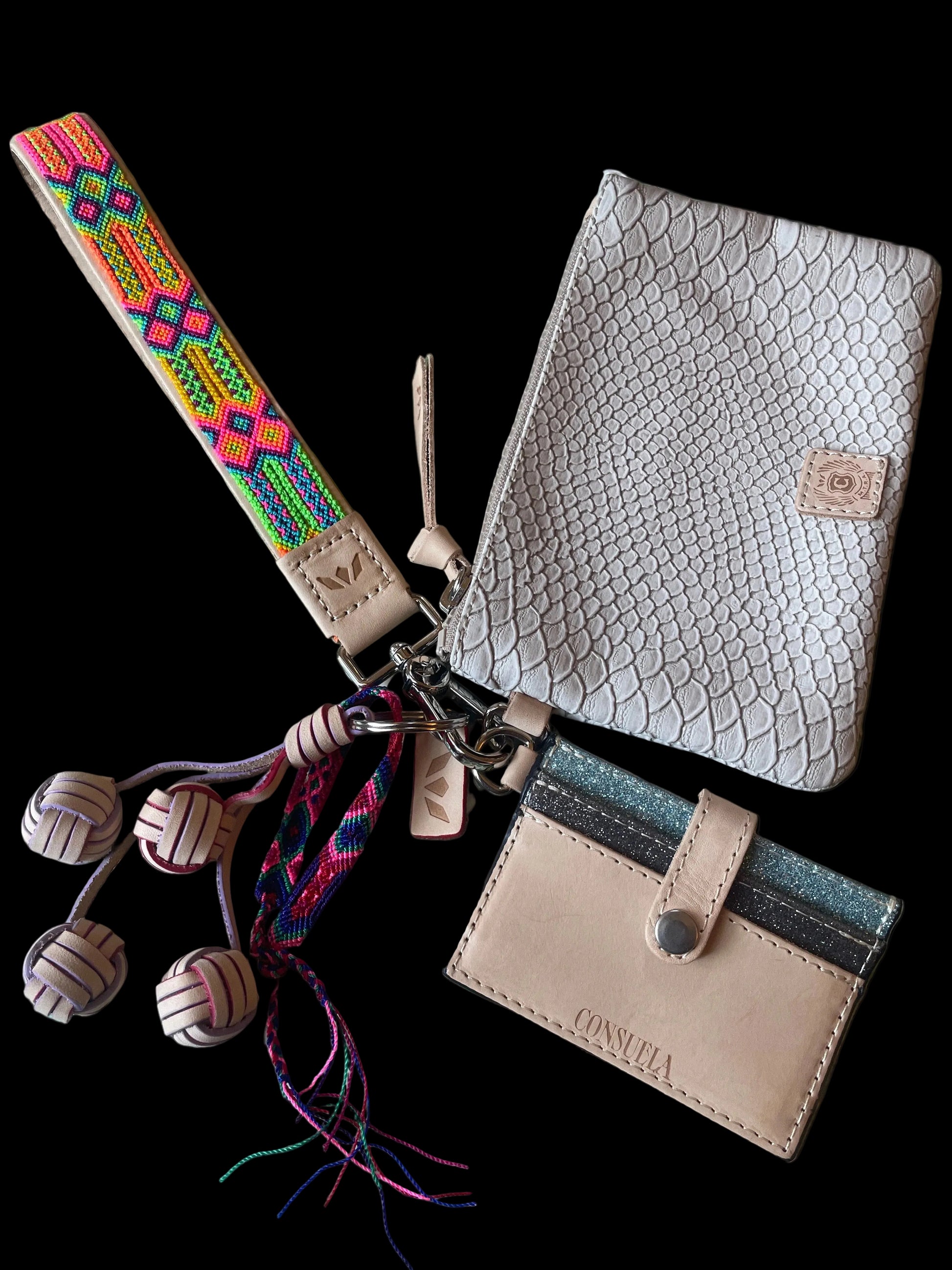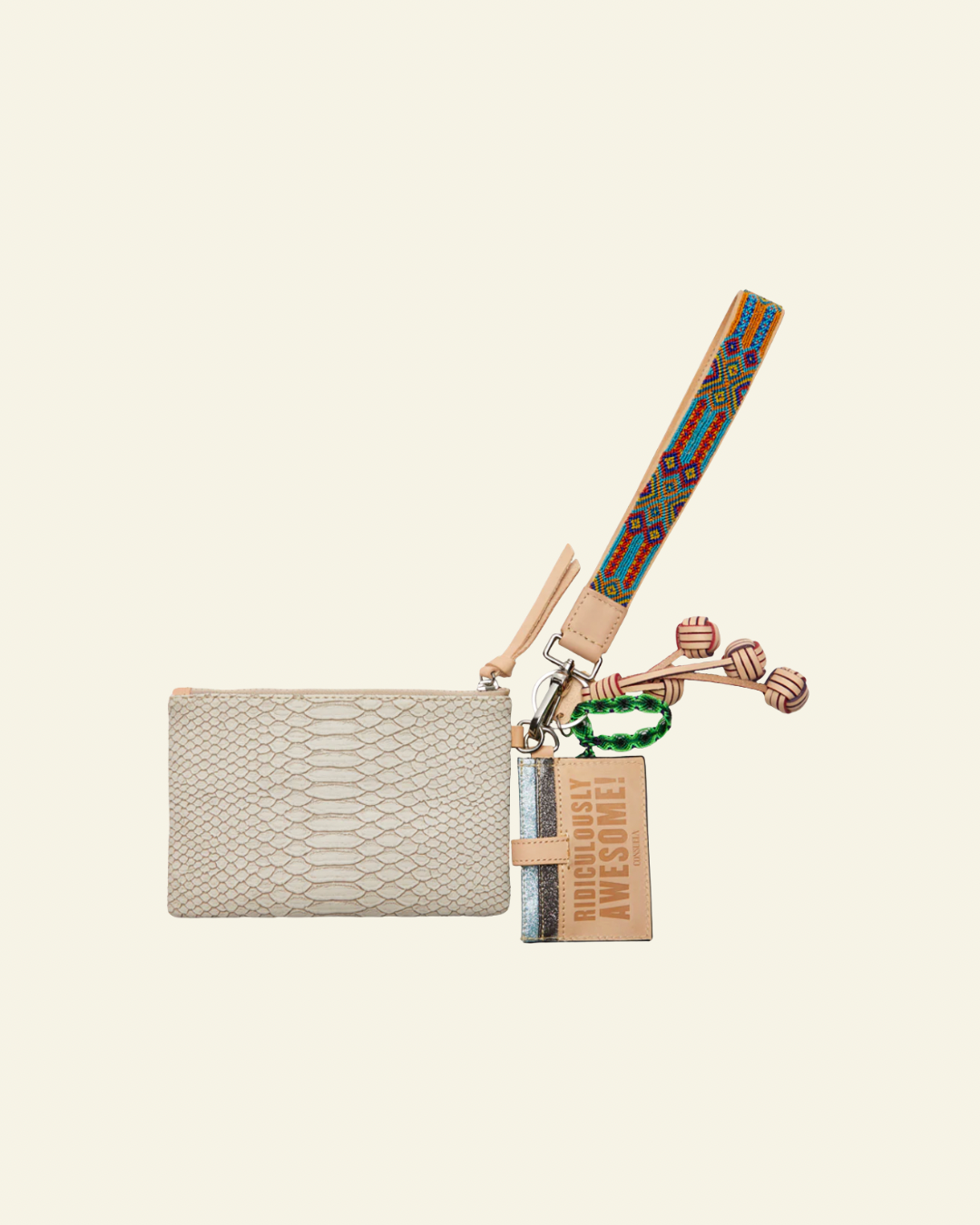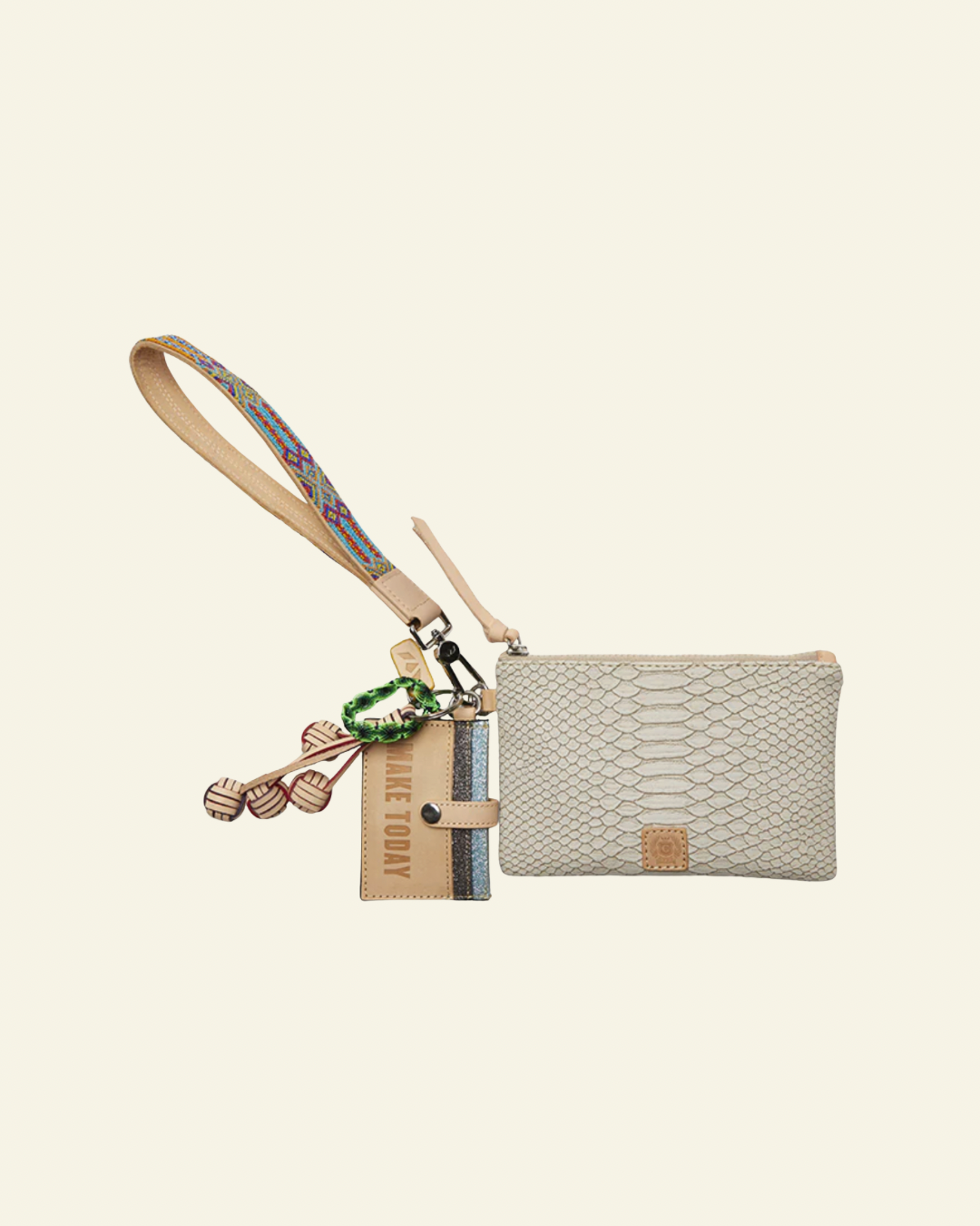 The Consuela Combi is your playful companion for keeping keys, cards, and essentials all in one spot—or easily split up. With its wristlet design, it fits snugly around your wrist while offering a pocket pouch and secure card slot wallet to keep your small stuff safe and handy wherever you go.
