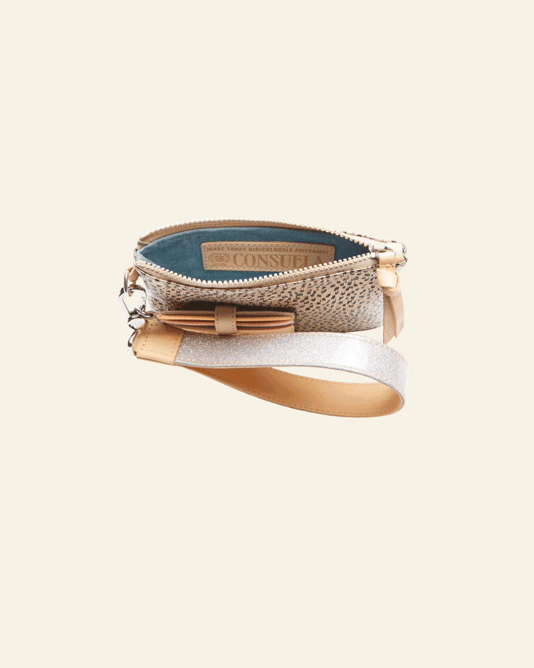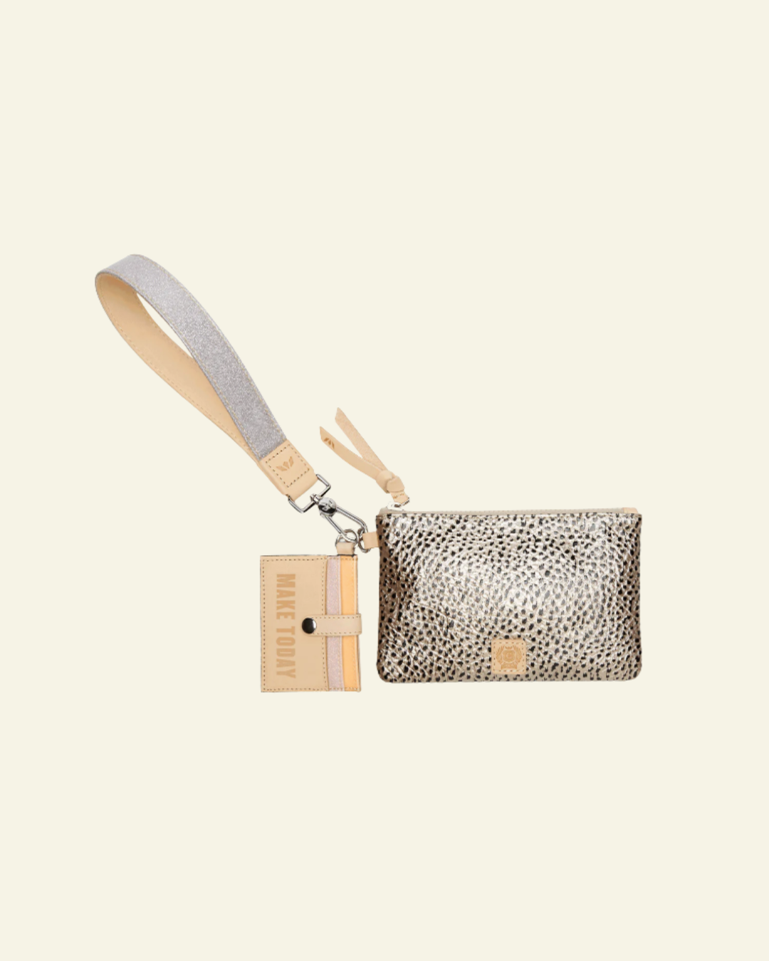 The Consuela Combi is your playful companion for keeping keys, cards, and essentials all in one spot—or easily split up. With its wristlet design, it fits snugly around your wrist while offering a pocket pouch and secure card slot wallet to keep your small stuff safe and handy wherever you go.