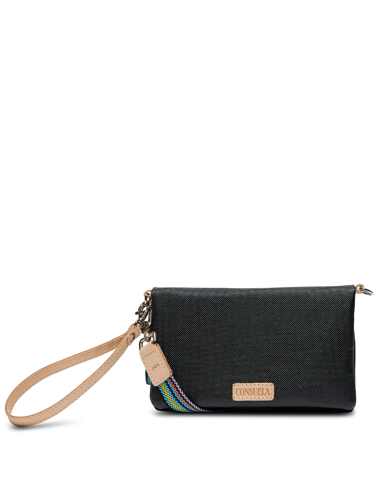 - Wristlet strap and adjustable woven crossbody strap (16 ½”-29”)