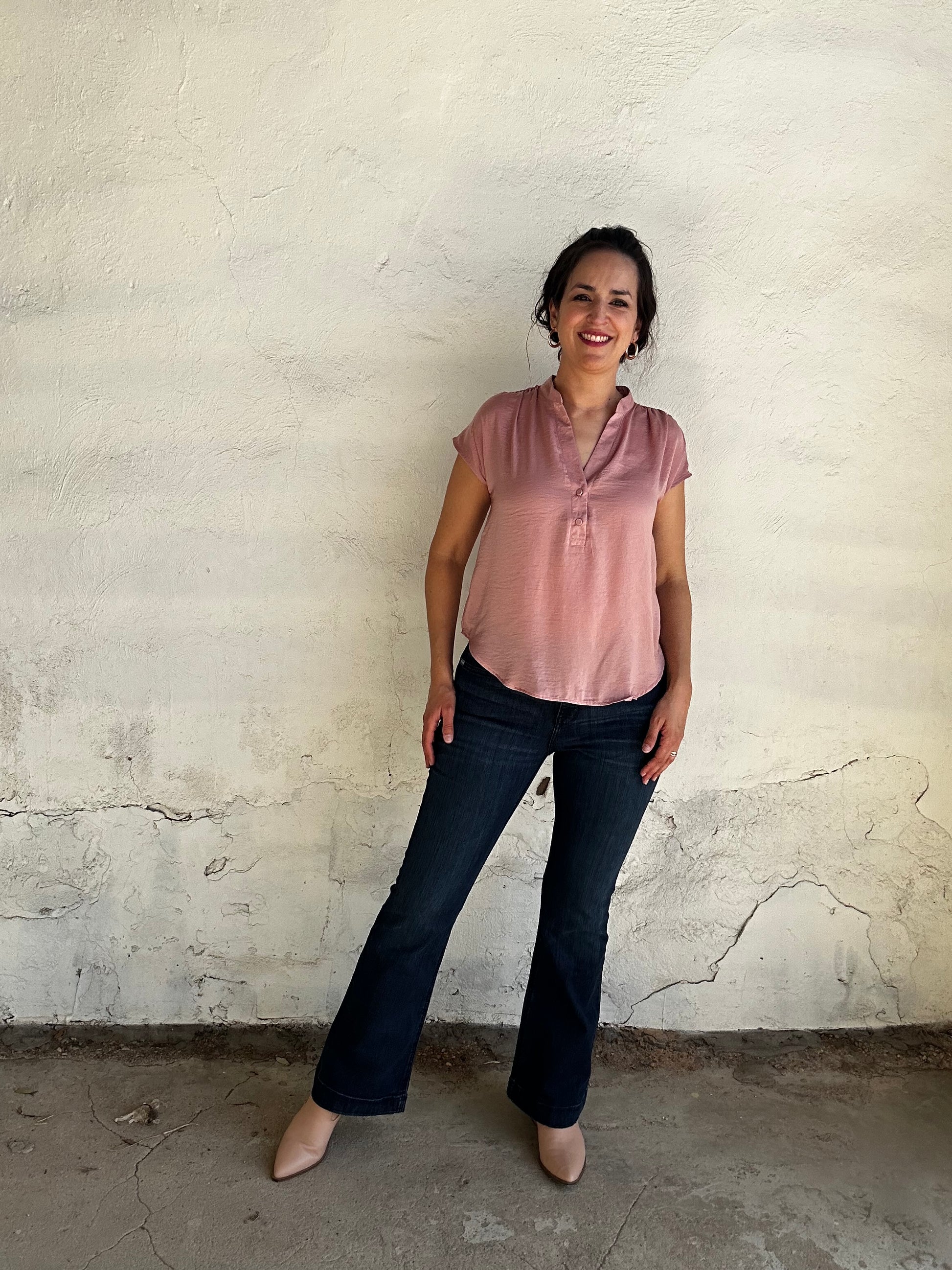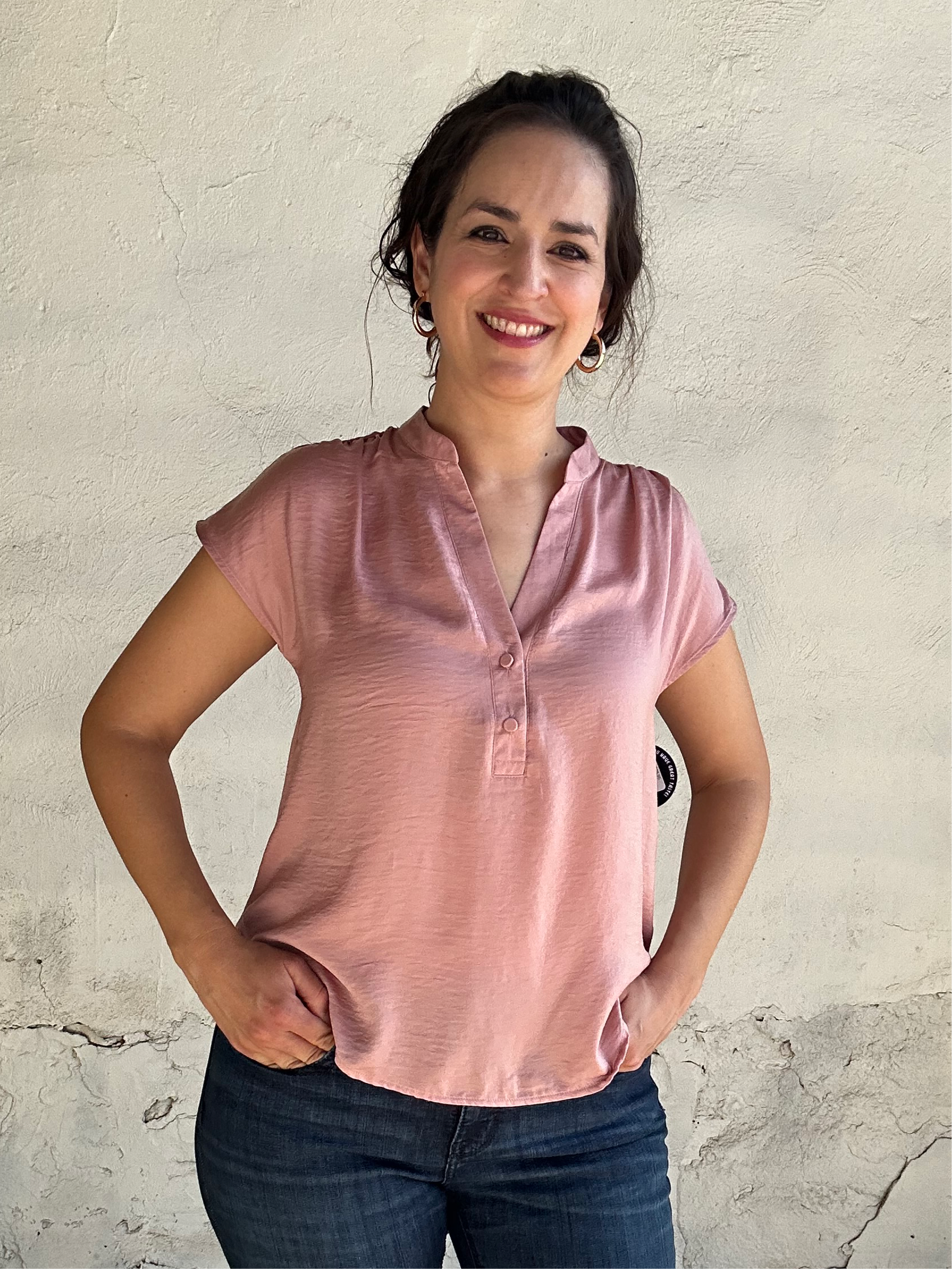 This V-neck top features a delicate button front, flattering neckline. This top can go from work to dinner, perfect for any day! The delicate features make this top a must-have for any wardrobe.